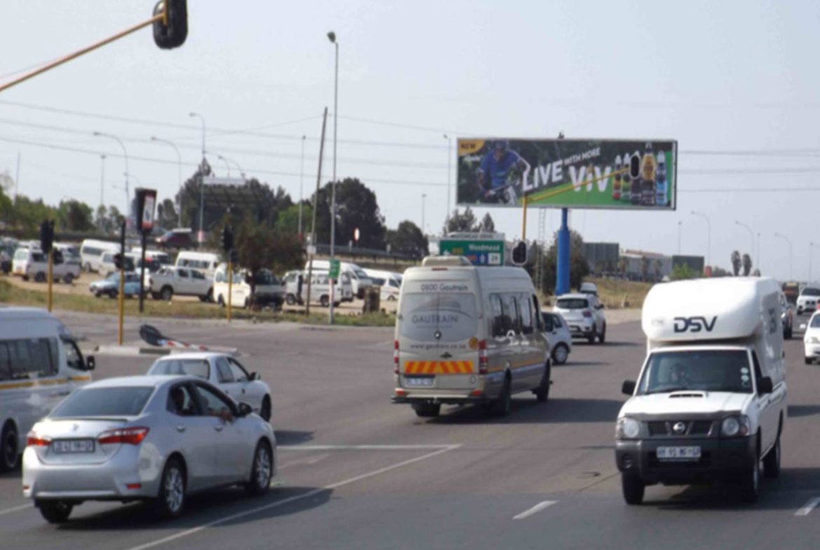 Corner of Woodmead Drive and Old Pretoria Main Road. 460 Metres to Makro and Woodmead Shopping Complex. Faces traffic heading towards Midrand.